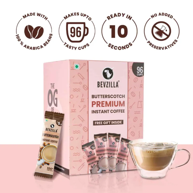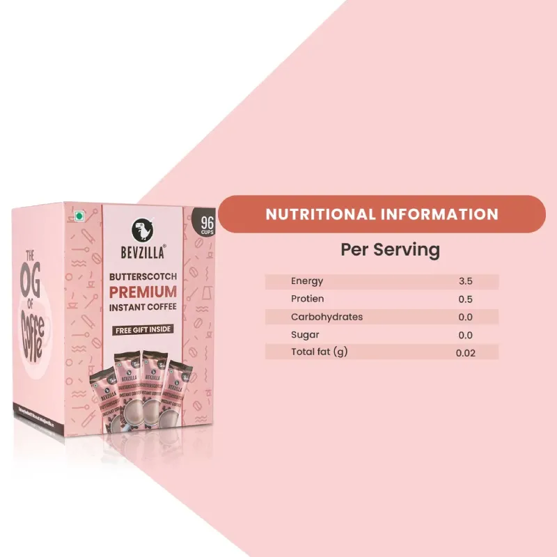 Bevzilla 96 Butterscotch Coffee Sachets Box – 100% Pure Arabica Beans