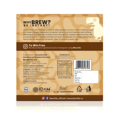 Indulge in the tropical symphony of convenience and luxury with Bevzilla’s Coconut Instant Coffee. Crafted meticulously from 100% Pure Arabica Beans, this delightful concoction promises a premium cafe-like experience in every sip, enriched with the exotic essence of coconut.