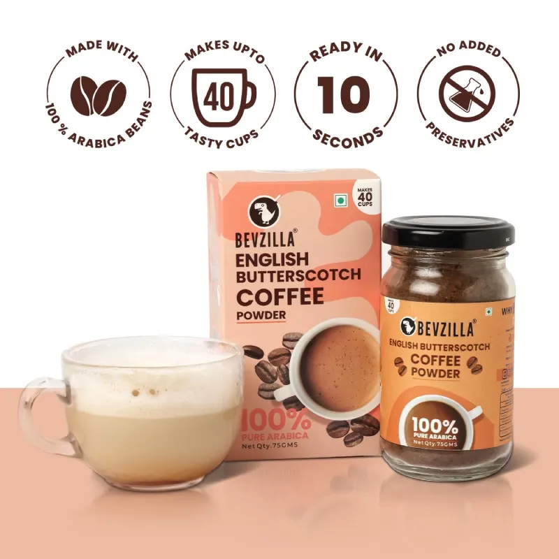 Bevzilla English Butterscotch Instant Coffee Powder (75g): Pure Arabica Beans Delight