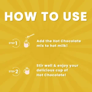 Creating your perfect cup of Bevzilla’s Hazelnut Hot Chocolate is as easy as 1, 2, 3. Just add hot milk to a couple of heaping tablespoons of the mix, stir thoroughly, and top with marshmallows or whipped cream for that extra touch of joy.