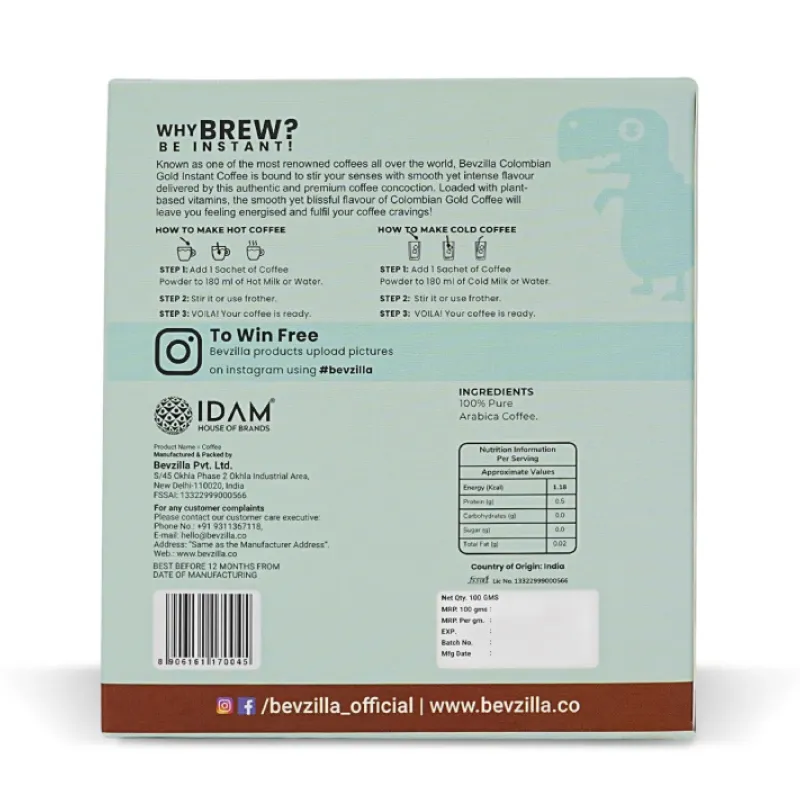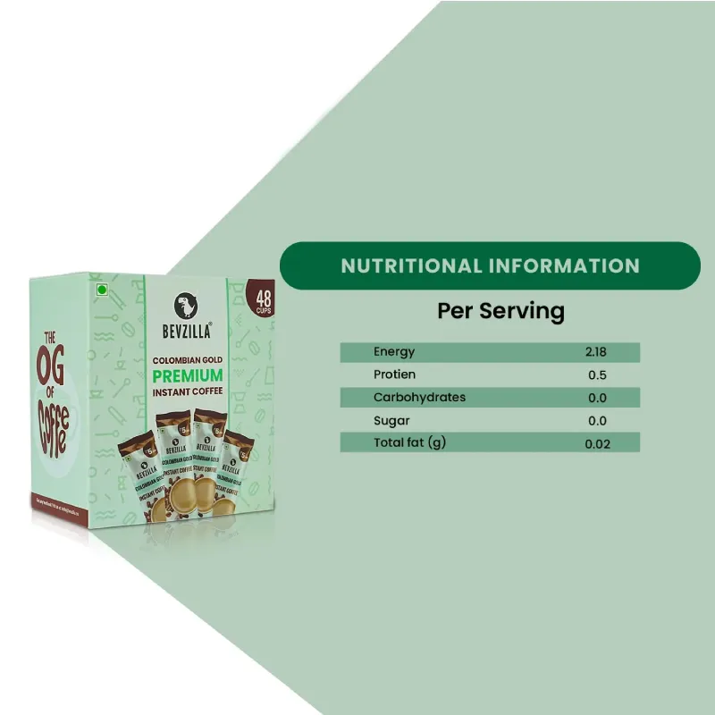 - Convenience Redefined: With 48 convenient and ready-to-use pouches per box, Bevzilla makes it easier than ever to enjoy your favorite cup of coffee anytime, anywhere. Simply add 2 gms of Coffee Powder to 180 ml of Hot or Cold Milk, add sugar as per your taste, blend for Frothy Cold Coffee or stir for Delicious Hot Coffee, and voila! Your instant coffee is ready to delight your taste buds.