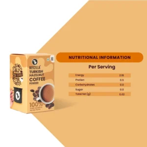 Experience the Bevzilla Difference: Elevate your coffee experience with Bevzilla Turkish Hazelnut Instant Coffee Powder. Made from 100% pure Arabica Beans, this delightful blend promises a smooth, delicious, and frothy coffee experience every time. With its plant-based vitamins blend, it offers a healthier alternative to regular coffee blends. Plus, it’s gluten-free, vegan-friendly, and contains no preservatives, additives, or added sugar. Enjoy the premium taste of freshly brewed cafe-like coffee in the comfort of your home, at the same cost as your regular coffee. With balanced, smooth, and strong flavors, infused with subtle aromatic notes, Bevzilla Turkish Hazelnut Instant Coffee Powder is your perfect companion for moments of indulgence and relaxation.