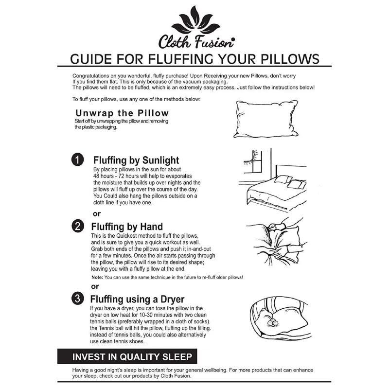- Care Tips: Vacuum-sealed; remove packing carefully, shake gently to retain fluffiness, and hit them from all sides to make them fluffier.