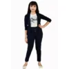 - Navy Blue 3/4 Printed Sleeve Jacket: Elevate the ensemble with a chic Navy Blue jacket boasting a 3/4 printed sleeve design. Its blend of juric and Twill fabric exudes durability and a trendy edge, perfect for cool evenings or stylish daytime layering.