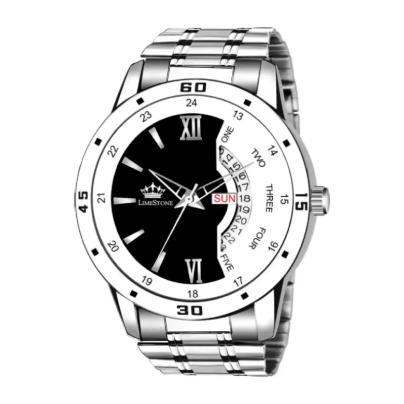Elevate your style with the LIMESTONE Bleed Black Day and Date Functioning Steel Strap Watch. Make a statement every time you check the time – because time waits for no one.