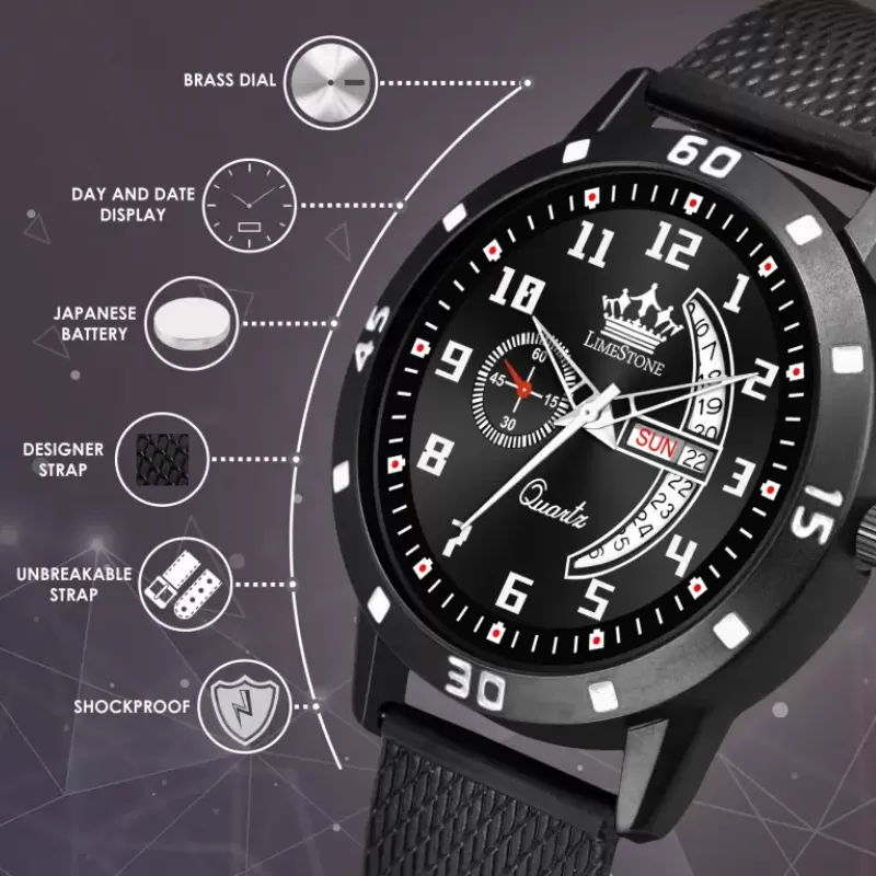 Are you someone who values punctuality and appreciates timeless style? Look no further than the LIMESTONE Classy Men’s Black Silicon Analog Watch. This wristwatch isn’t just a timekeeping device; it’s a statement of sophistication and reliability.