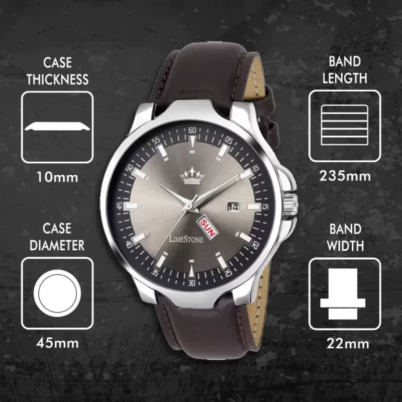 Embrace sophistication with the LIMESTONE Trendy Wine Grey Avatar Men Watch, powered by a high-quality Japanese battery that ensures accuracy and reliability. The faux leather strap in a rich brown hue not only complements the grey dial but also provides comfort for all-day wear.