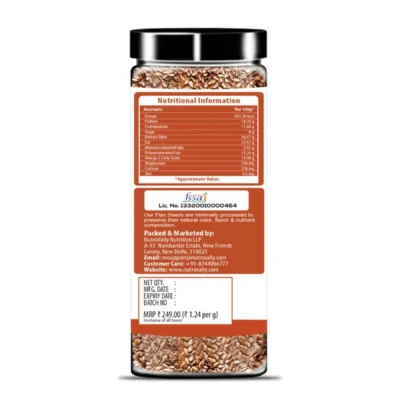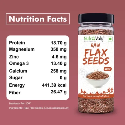 At the heart of NutroVally Flax Seeds is a treasure trove of Omega-3 fatty acids, essential nutrients known for their heart-protective benefits and ability to enhance your overall well-being. With a blend of soluble and insoluble fiber, these seeds are a natural solution to improving digestive health, ensuring that your system runs smoothly and efficiently. But that’s not all; these flax seeds are a powerhouse of dietary fiber, aiding in weight management and supporting a healthy metabolism.