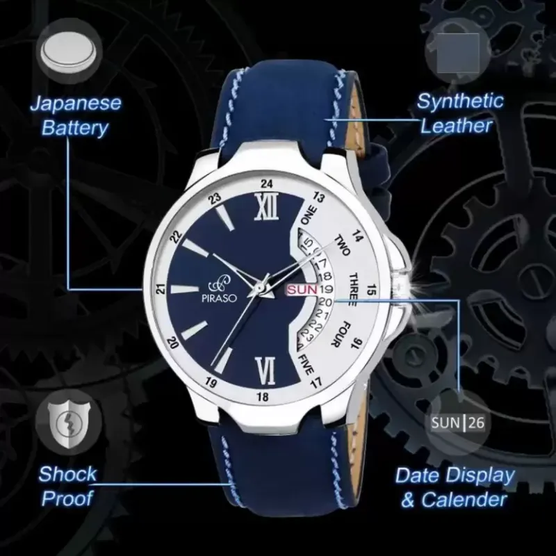 Hey there, trendsetter! Welcome to the world of PIRASO, where grand style meets unparalleled quality. We’re thrilled to introduce the PIRASO Bleed Blue Day and Date Functioning Strap Adult Quartz Analog Watch for Men – a timepiece that doesn’t just keep track of moments but makes a statement about your personality.