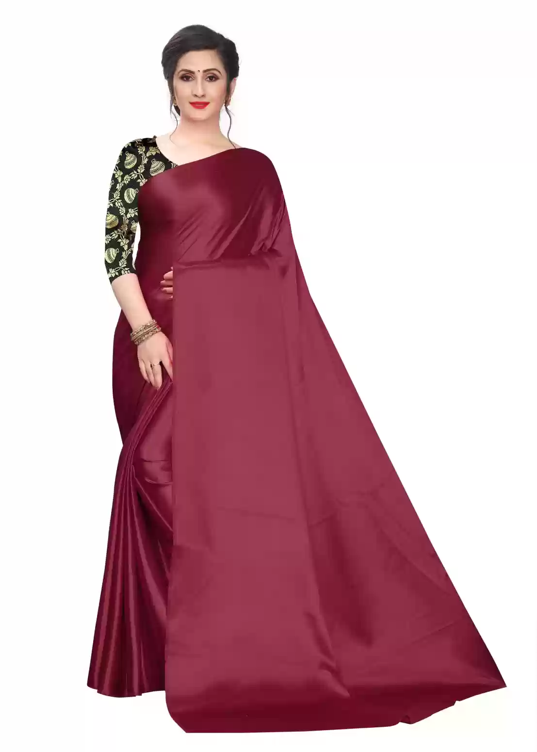 Shopsy Satin Silk Saree With Jacquard Blouse