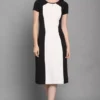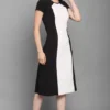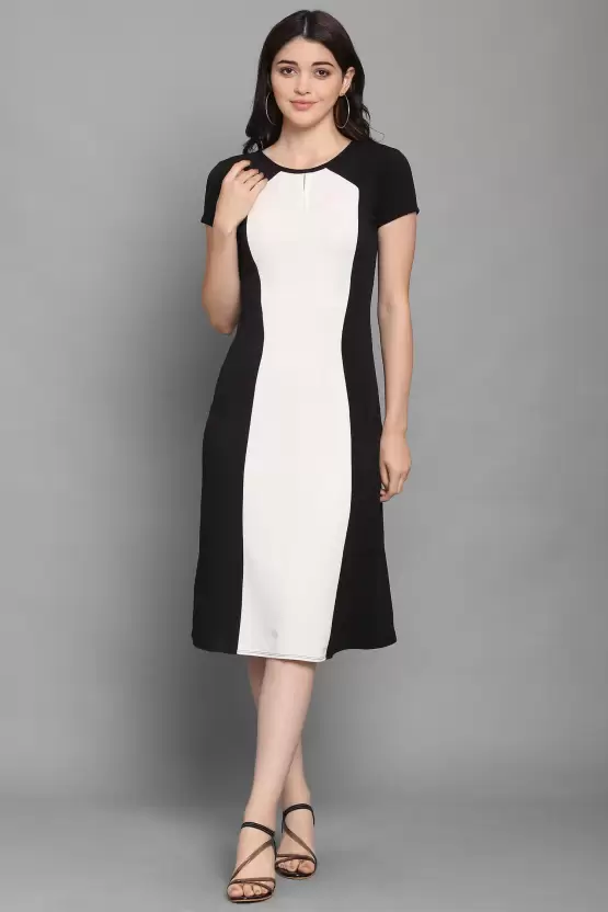 Dive into a world where elegance meets comfort with the Shopsy A-line Dress for Women in an eye-catching Black & White. Fashioned from a luxuriously heavy imported Lycra blend, this dress is a testament to timeless style and unmatchable quality, ensuring you stay comfortable while turning heads. With its below-the-knee length and chic colorblocked pattern, this dress is your perfect companion for any occasion, from formal gatherings to casual evenings out.