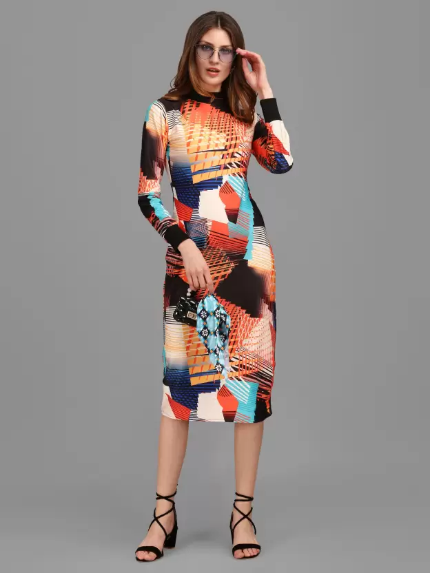 Shopsy Chic Multicolor Bodycon Midi Dress for Women