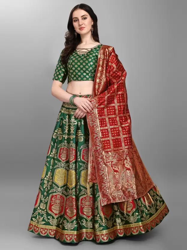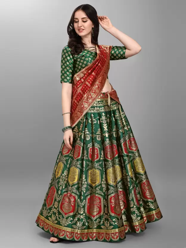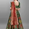 Dive into the world of grandeur and elegance with the Shopsy Printed Semi Stitched Lehenga Choli in a captivating dark green hue. This piece is not just an outfit; it’s a gateway to embodying grace and beauty at any celebratory event. Crafted meticulously for the woman who adorns herself with nothing but the best, this ensemble is a testament to timeless fashion and intricate craftsmanship.