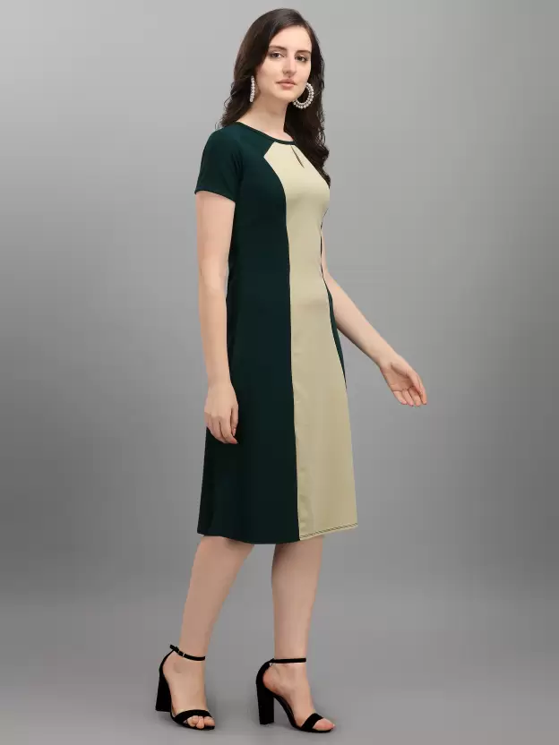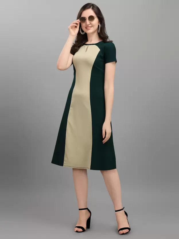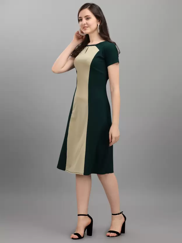 Discover elegance redefined with the Shopsy Women’s A-line Dress in a mesmerizing Light Olive, Green shade. Crafted from a luxuriously heavy imported Lycra blend, this below-the-knee dress promises not just to elevate your style quotient but to offer unmatched comfort with its fully stretchable fabric. Whether you’re stepping out for a casual evening, attending a formal function, or dazzling at a friend’s party, this dress ensures you remain the cynosure of all eyes.