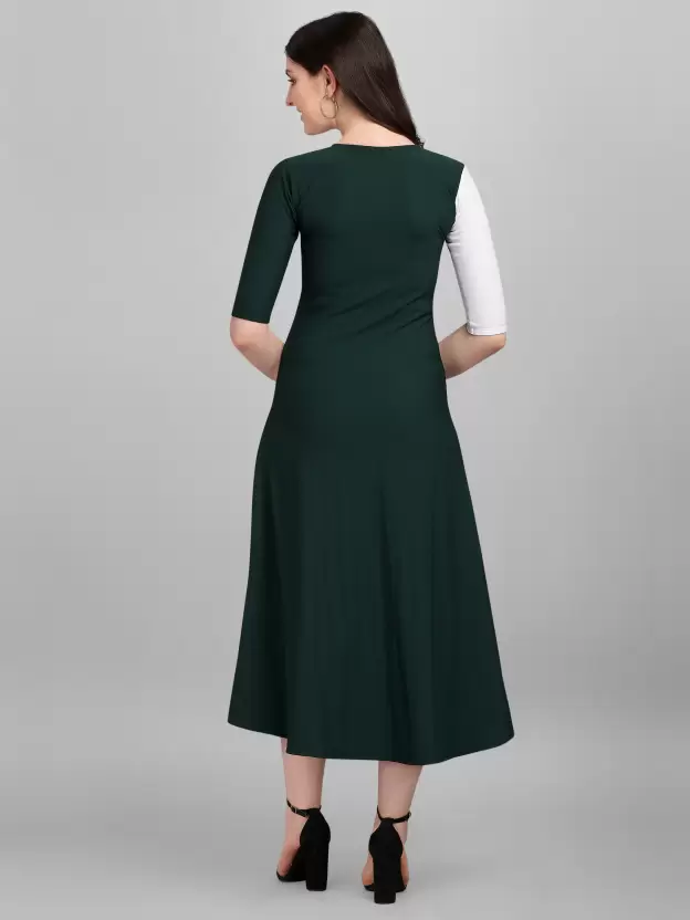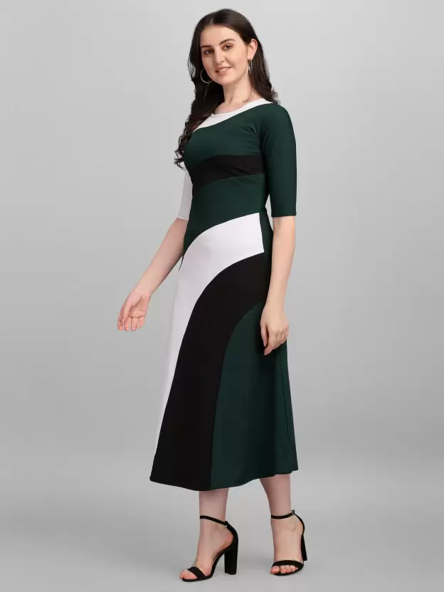 Dive into a world where style meets comfort with the Shopsy Empire Maxi Dress for Women in a captivating White & Green colorblock design. Crafted for the modern woman, this dress embodies elegance and versatility, making it a must-have in your wardrobe. The Lycra blend fabric ensures a snug fit while offering unmatched comfort and flexibility, allowing you to move freely and confidently throughout your day.