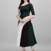 - Fashion-Forward Design: The Empire silhouette paired with a sophisticated color-blocked pattern offers a contemporary twist to the classic maxi dress.