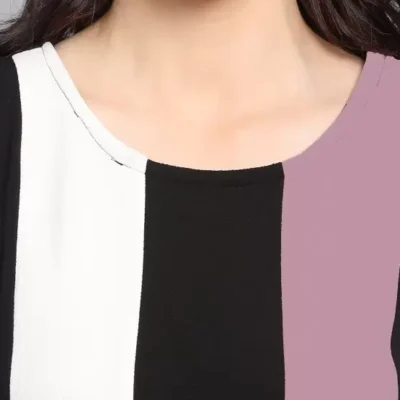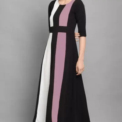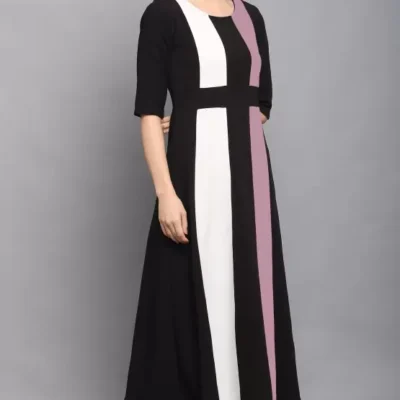 Dive into the world of elegance and comfort with the Shopsy Women’s Fit and Flare Multicolor Dress, a testament to timeless style and contemporary design. This exquisite piece, crafted from a luxurious Lycra blend, boasts a captivating color block pattern in shades of purple, black, and white, promising not just an outfit but a statement.