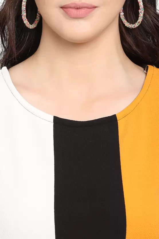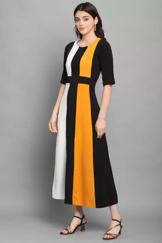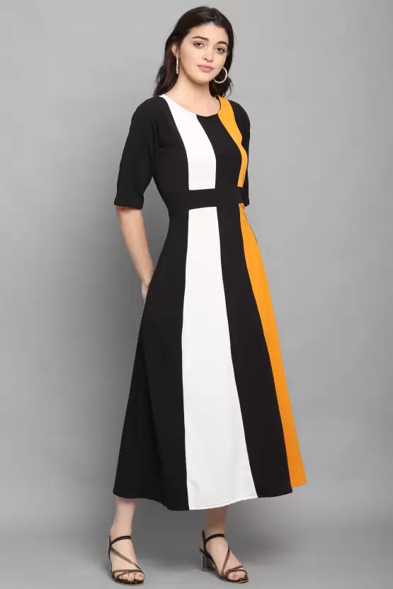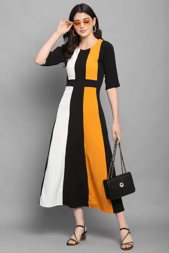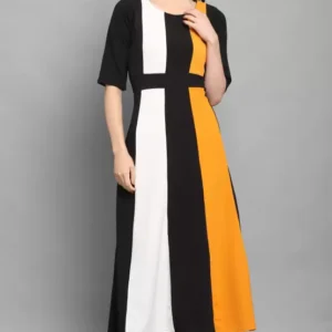 Dive into a world where style meets comfort with the Shopsy Women Fit and Flare Multicolor Dress. A piece that echoes the vibrant energy of summer with its lively yellow, black, and white color blocks, this dress is a testament to timeless fashion infused with modern sensibility. Crafted from a luscious Lycra blend, it promises not only a flattering fit but also an embrace that moves with you, making each step a statement of freedom and grace.