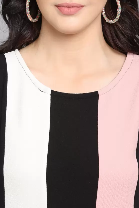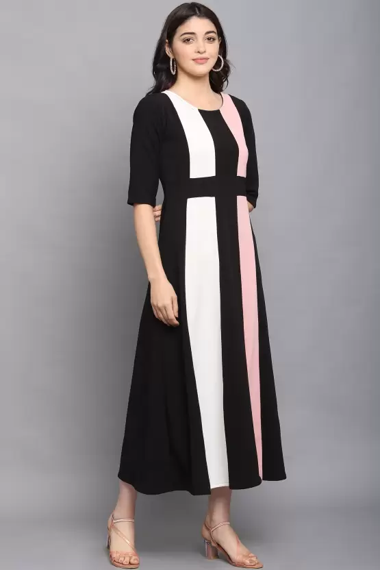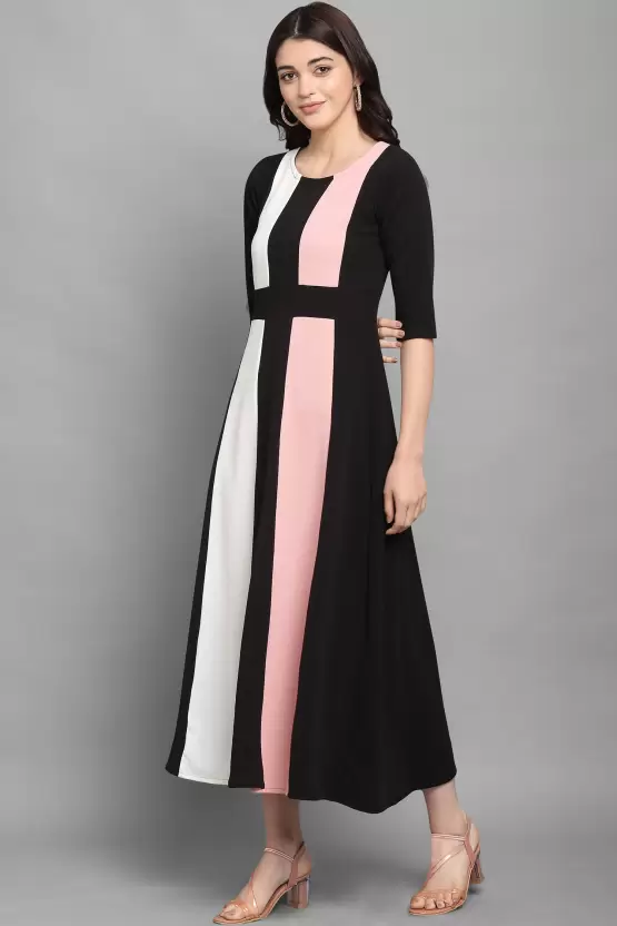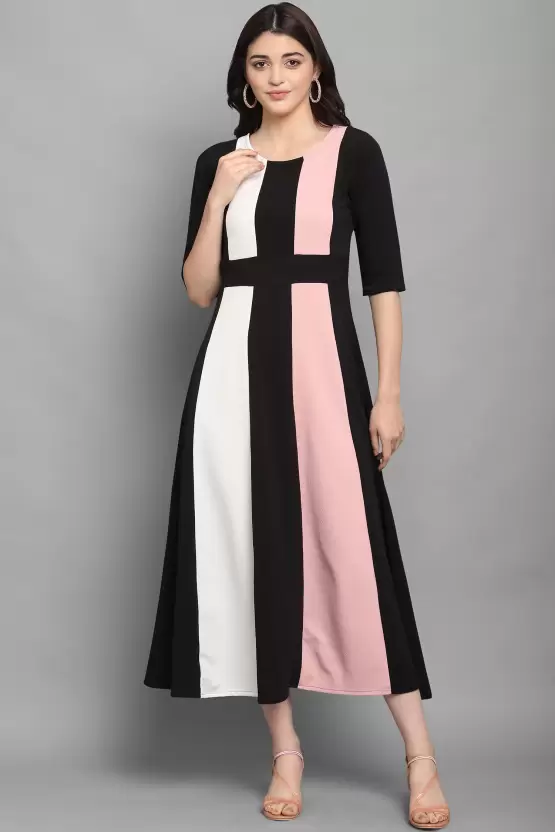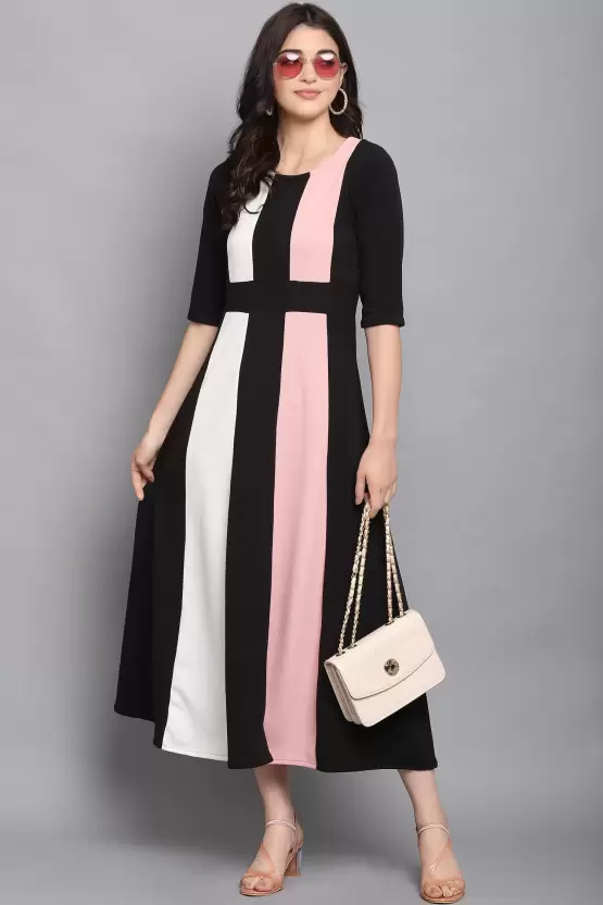 Dive into a world where style meets comfort with the Shopsy Empire Waist Flare Dress, a dazzling ensemble that blends the peach, black, and white hues into a masterpiece of fashion. Crafted from a luxurious Lycra blend, this dress offers both elegance and ease, ensuring you look fabulous without compromising on comfort. Its unique color-blocked pattern, coupled with an empire waist design, not only accentuates your figure but also lends an air of sophistication and flair to your wardrobe.