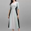Designed For Versatility: Whether you’re attending a formal event, a casual gathering, or anything in between, this dress adapts seamlessly to your needs. The round neck and half sleeves add a touch of sophistication, making it suitable for various occasions.
