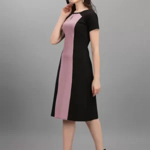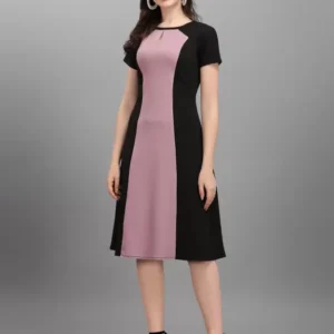 Dive into the heart of sophistication with the Shopsy Women A-line Dress, a masterpiece that harmonizes the grace of purple and the depth of black in a stunning color-blocked design. Crafted from a luxurious Lycra blend, this dress promises not only head-turning elegance but also unmatched comfort with its heavy imported fabric that’s fully stretchable. The allure of this dress lies not just in its vibrant hues but in its ability to mold flawlessly to your silhouette, celebrating every curve with its below-knee length and fit & flare style.