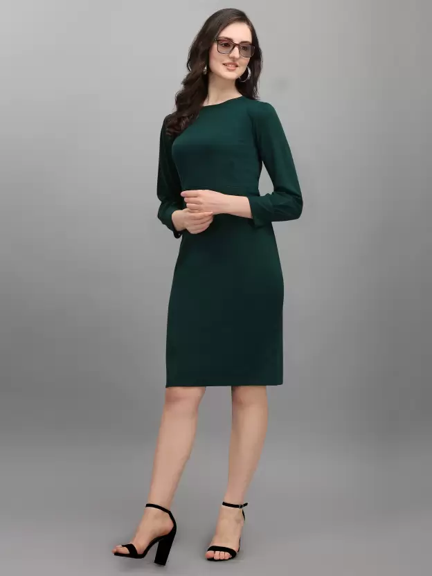 Embrace elegance and style with the Shopsy Women Bodycon Round Neck Green Dress, a stunning ensemble that exudes sophistication and charm. Crafted from a luscious blend of Lycra, this knee-length masterpiece promises not just to adorn you but to redefine comfort and grace in every stitch. Whether it’s a casual outing, a day at work, or an evening affair, this dress stands as a testament to versatility and beauty.