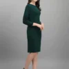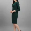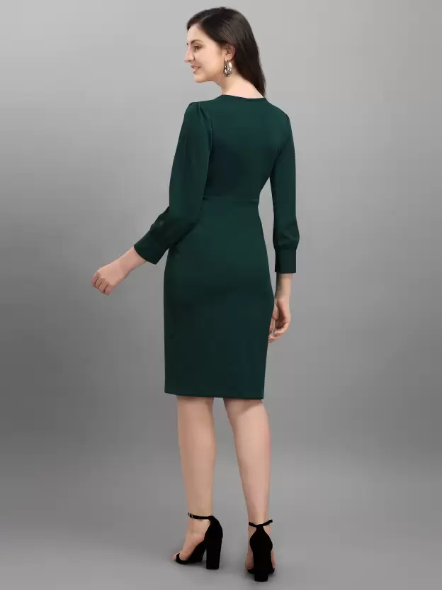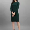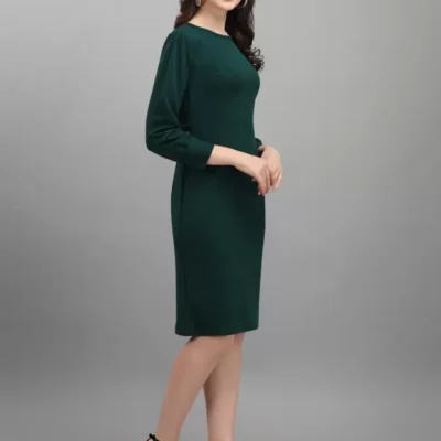 - Design That Speaks Volumes: With its solid green color, round neck, and 3/4 sleeves, the dress encapsulates a blend of simplicity and allure, making you the epitome of class at any event.