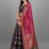 From the swirl of the lehenga to the flow of the dupatta, each element is designed to offer a stunning visual impact. Whether it’s a wedding, Navratri, or any formal function, this outfit guarantees you’ll be the center of attention.