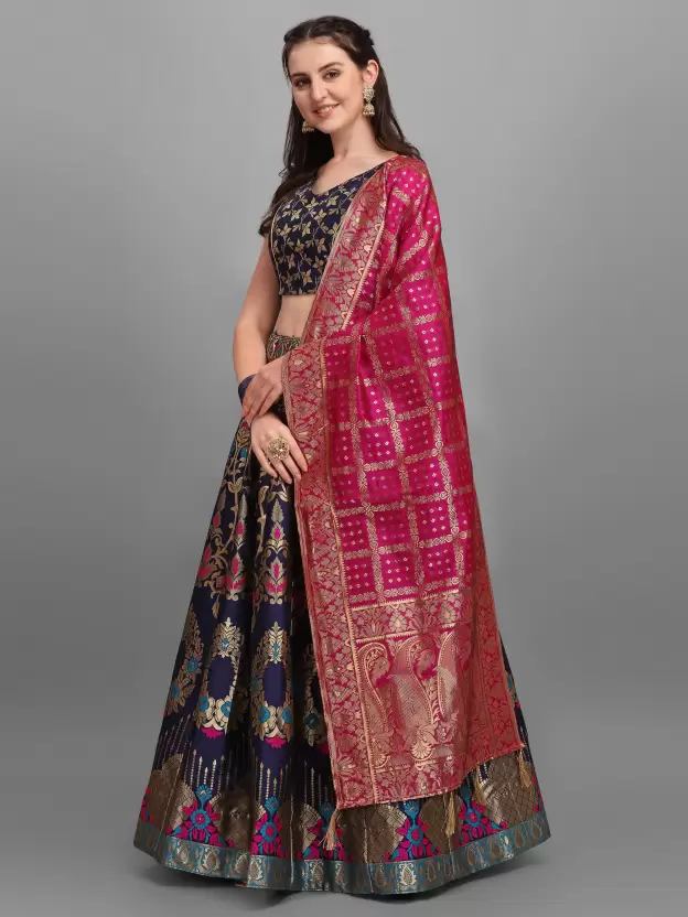 Discover elegance and sophistication with the Shopsy Solid Semi-Stitched Lehenga Choli in a captivating Navy Blue. This ensemble, perfect for weddings and festive occasions, reflects a blend of traditional charm and modern aesthetics, promising to make every moment memorable.