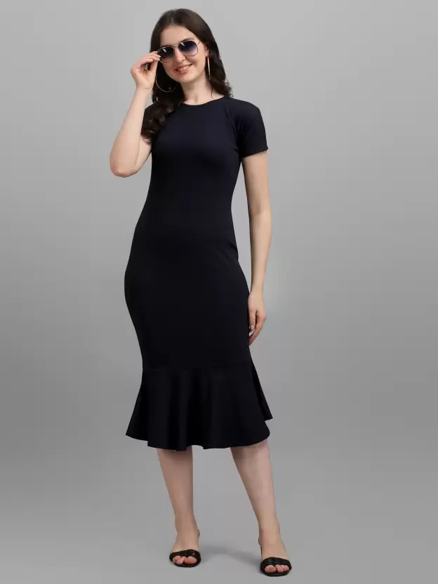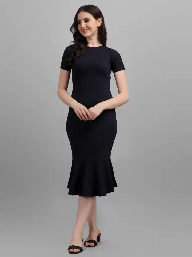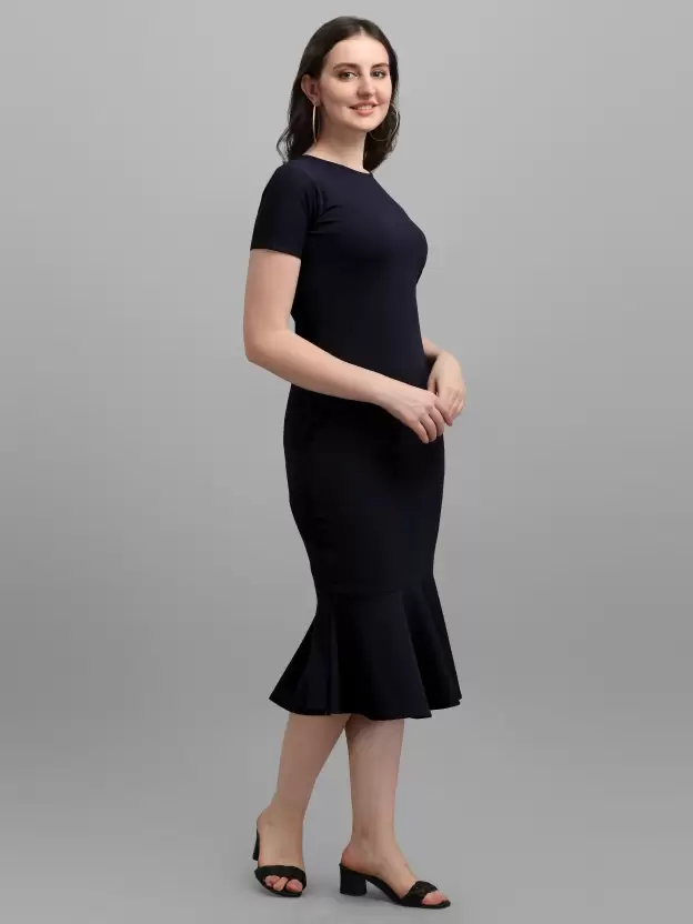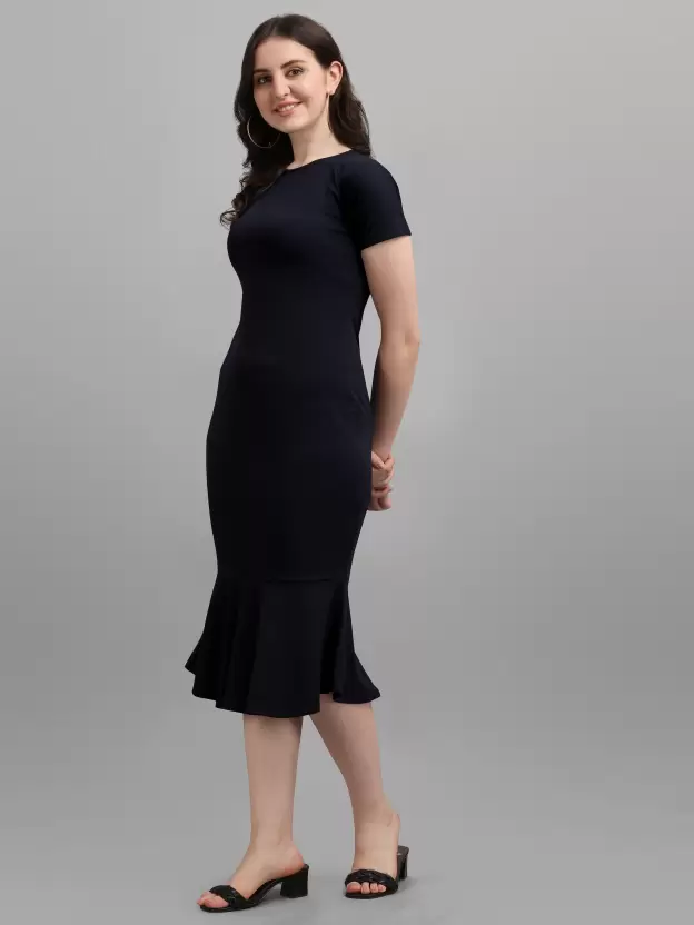 Channeling an elegant look, this Shopsy Women’s Bodycon Dark Blue Dress grabs attention with its all-over design. Crafted from a luxurious Lycra blend fabric, this dress ensures comfort throughout the day while exuding sophistication.