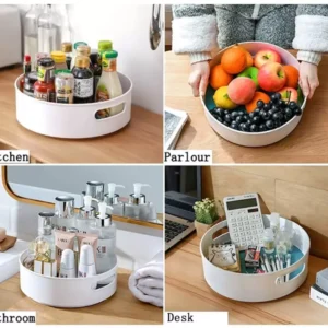 Are you tired of rummaging through cluttered cabinets and shelves to find your essentials? Say goodbye to the chaos and embrace the convenience of our 360° Rotating Organizer Tray. Designed to simplify your life, this versatile organizer is here to revolutionize your kitchen and cosmetic storage game.